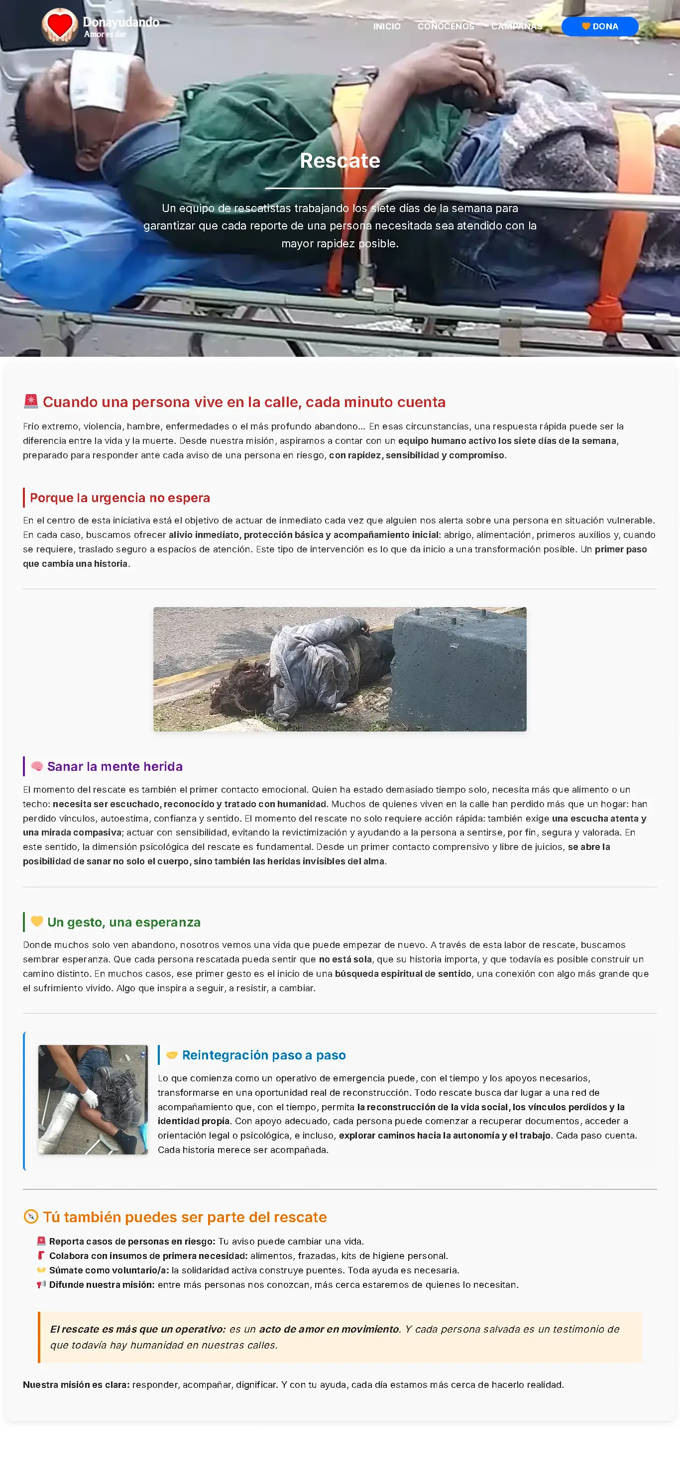 Vista previa parcial de dos de las páginas del nuevo diseño del sitio Donayudando.org.